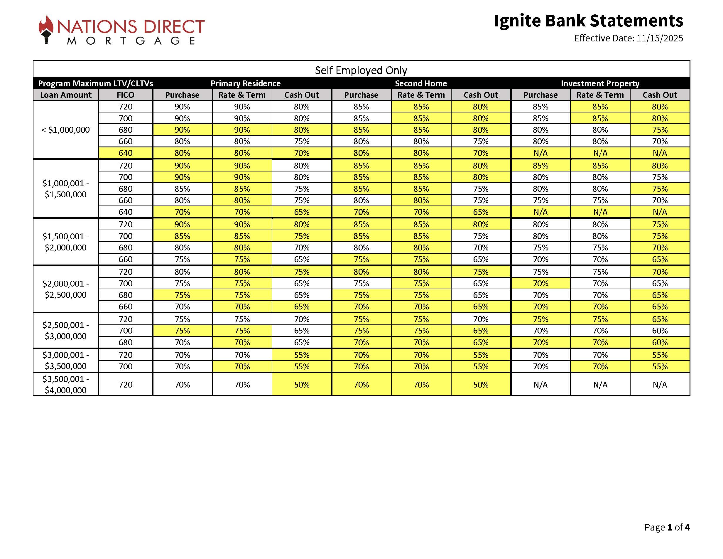 Ignite Bank Statement Expanded Guidelines Matrix