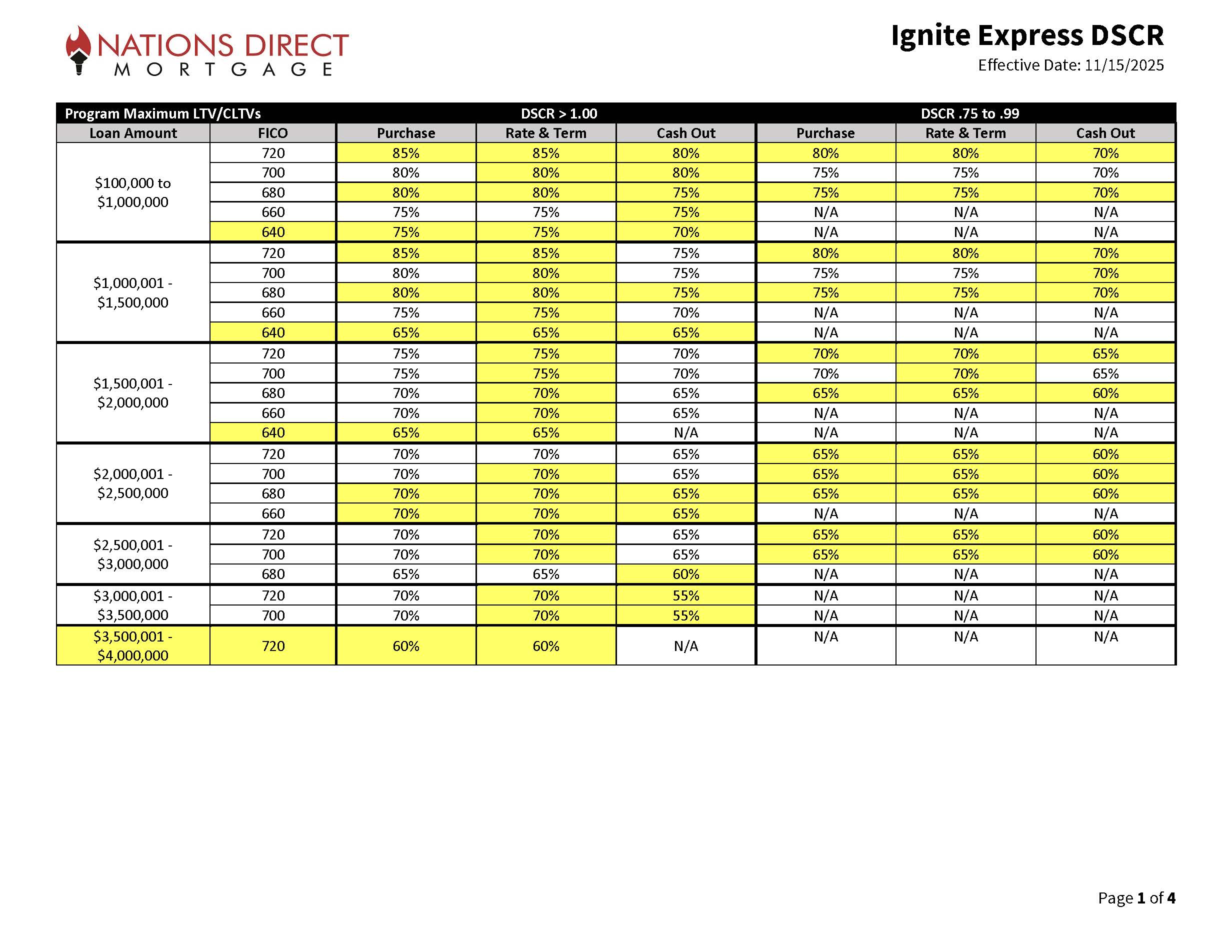 Ignite DSCR Expanded Guidelines Matrix